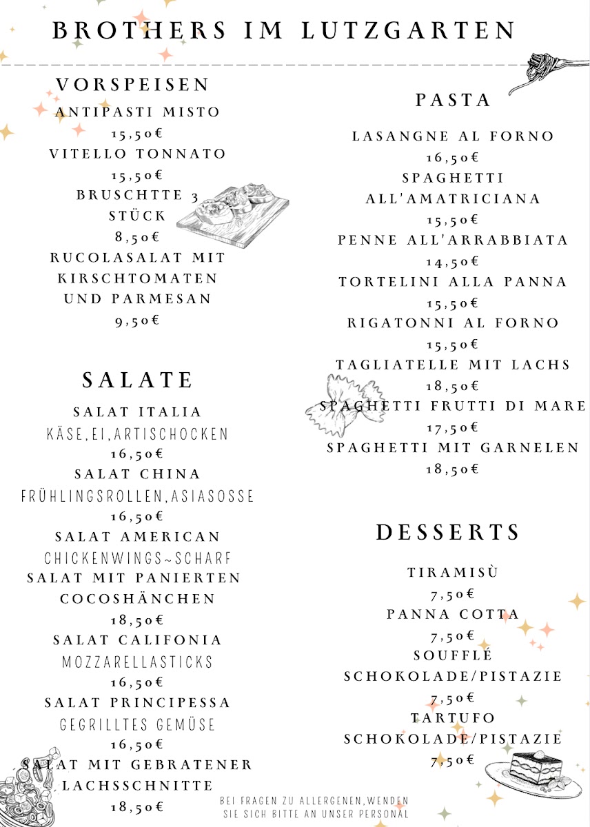 Whether for a casual lunch or a festive gathering, Brothers Im Lutzgarten is a must-visit for those seeking delicious food and a warm ambiance. Just remember to bring cash, as is customary in many German establishments!